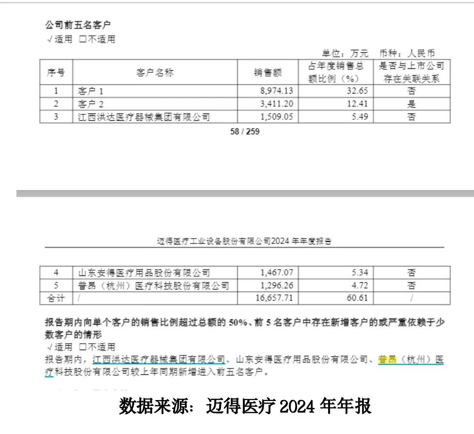 迈得医疗2024年前五大客户及销售金额明细